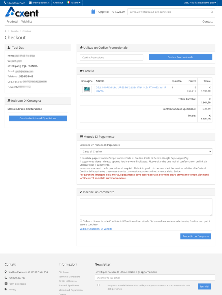 – pagamento con PayPal e carte di credito, checkout anche senza registrazione.