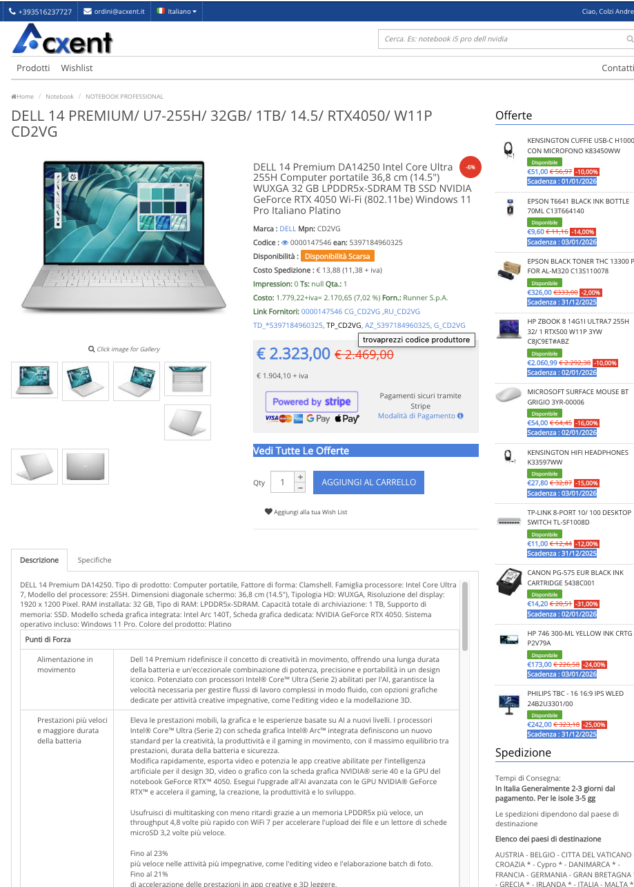 Lo stesso motore può essere adattato al tuo catalogo, mantenendo tutte le funzionalità già sviluppate (sincronizzazione listini fornitori, promozioni, reportistica) e aggiungendo le personalizzazioni che ti servono.