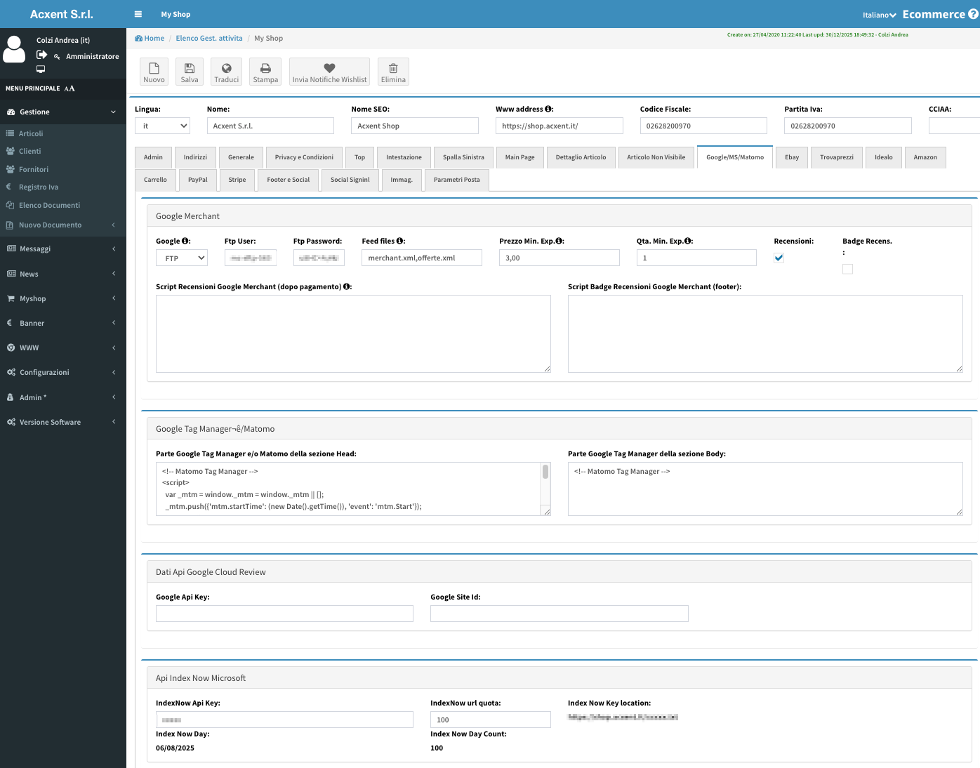 – inviare i prodotti a Google Merchant e a Ebay