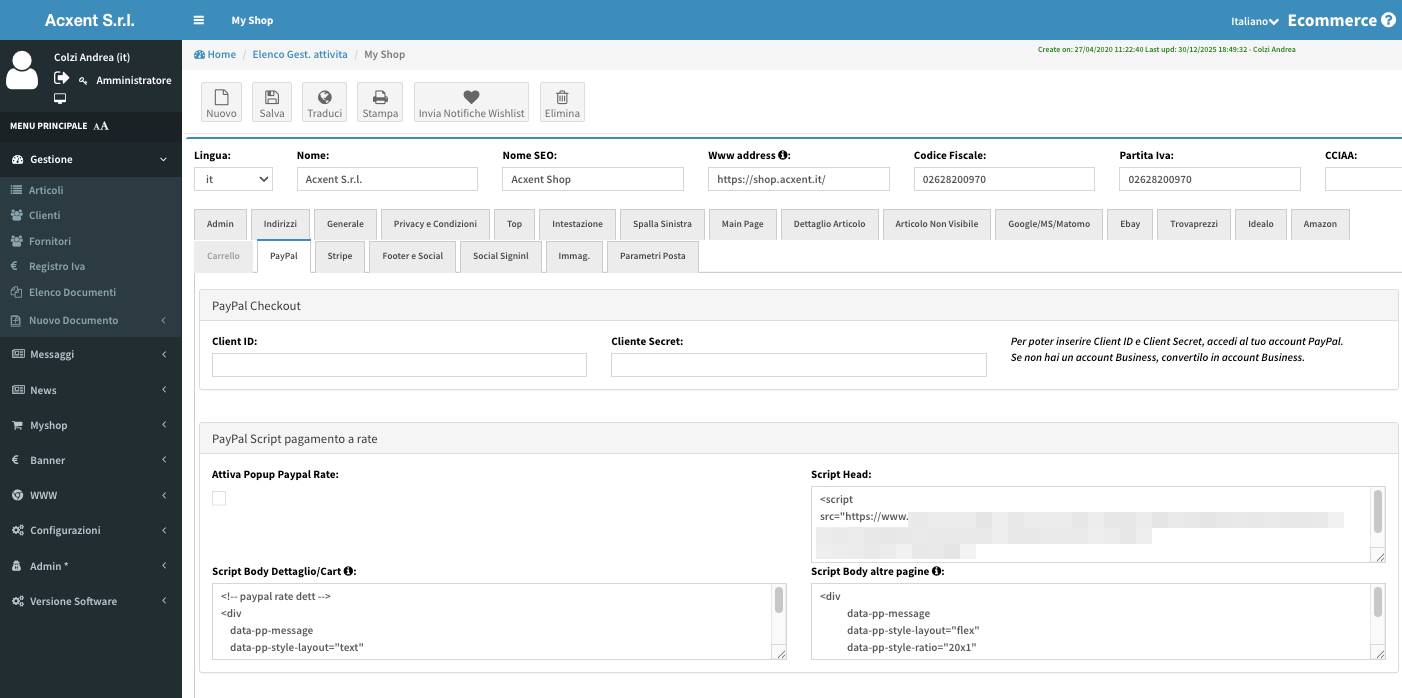 – configurare pagamenti tramite PayPal e altri gateway