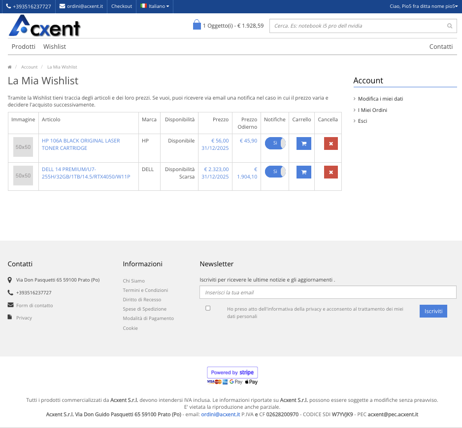 Il cliente può creare una wishlist con gli articoli che lo interessano e ricevere notifiche su variazioni di prezzo o disponibilità.